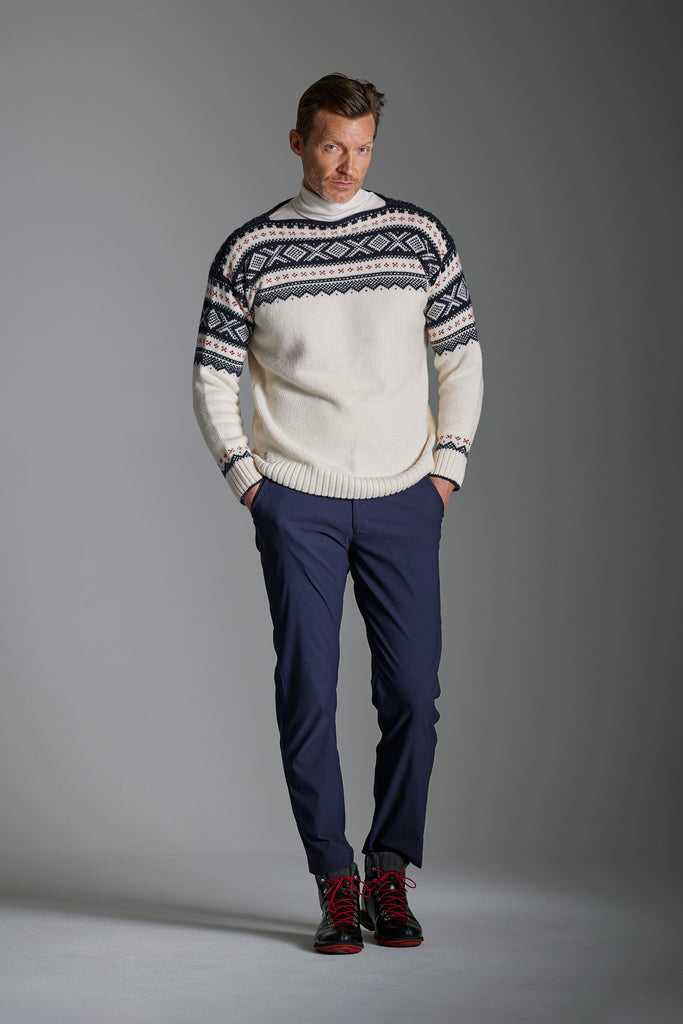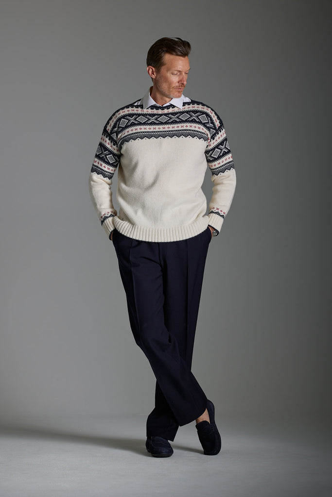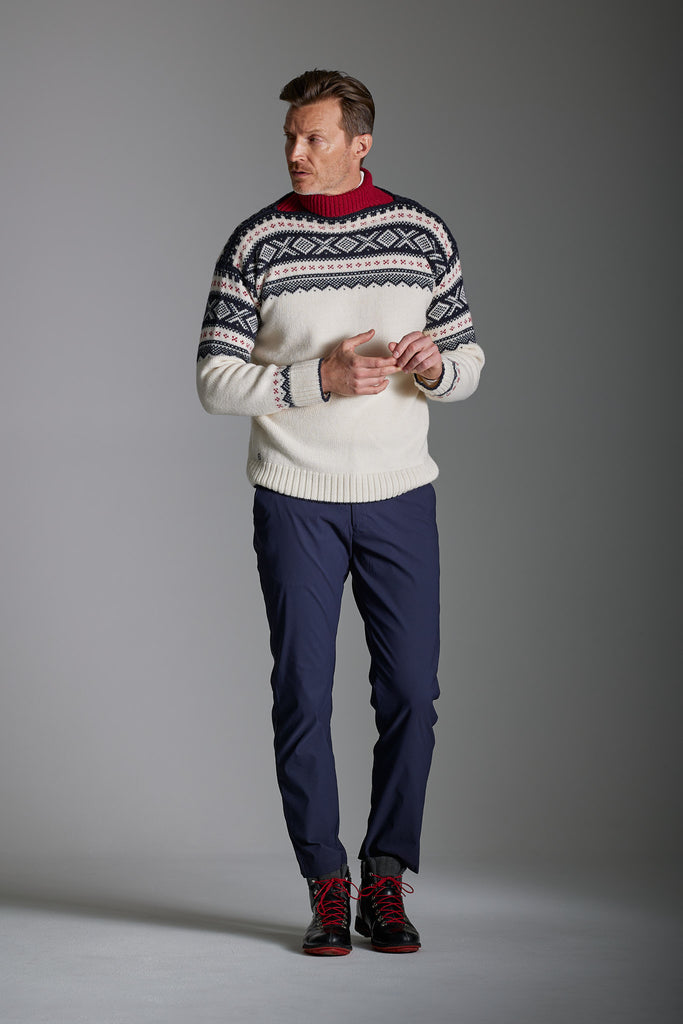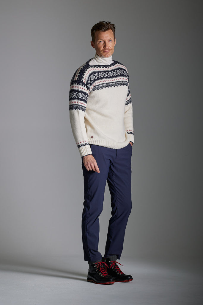 Stein Eriksen var kjent for sin elegante stil, alltid antrukket i sin mors strikkedesign. For å hedre Stein sin store innsats som frontfigur for Bitten Eriksens mest populære genser, ser vi frem til å presentere denne klassikeren under navnet «Stein».