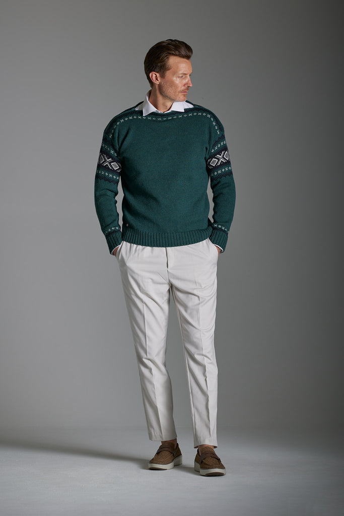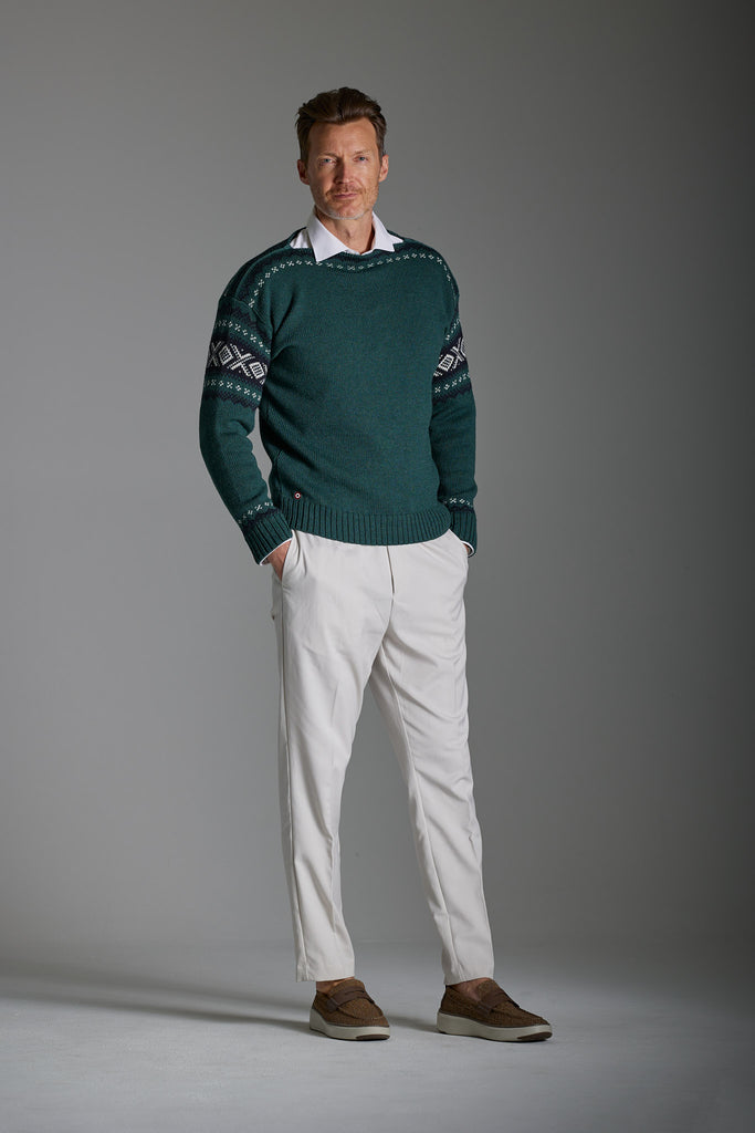 For å oppnå en myk og lett kvalitet består våre strikkeplagg av 50% merino ull og 50% alpakka som er naturens ypperste varmeregulerende materialer. Kombinasjonen av merinoull og alpakka er i tillegg pustende og fukttransporterende. Naturlig lett og myk er den behagelig å ha inntil huden og sørger for en jevn kroppstemperatur.